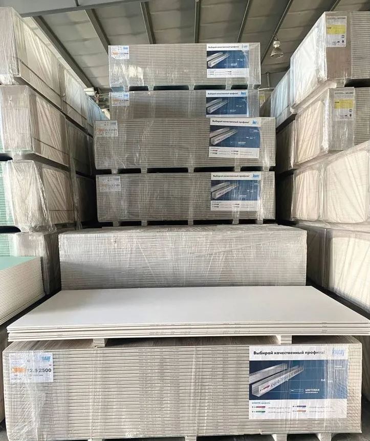Купил ГВЛ 12.5 мм Knauf для звукоизоляции. Доволен качеством, толщина соответствует заявленной.